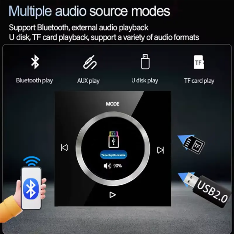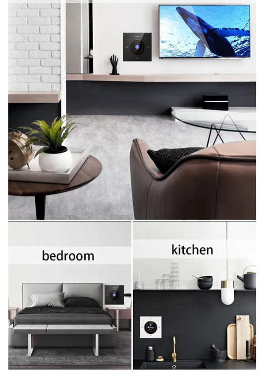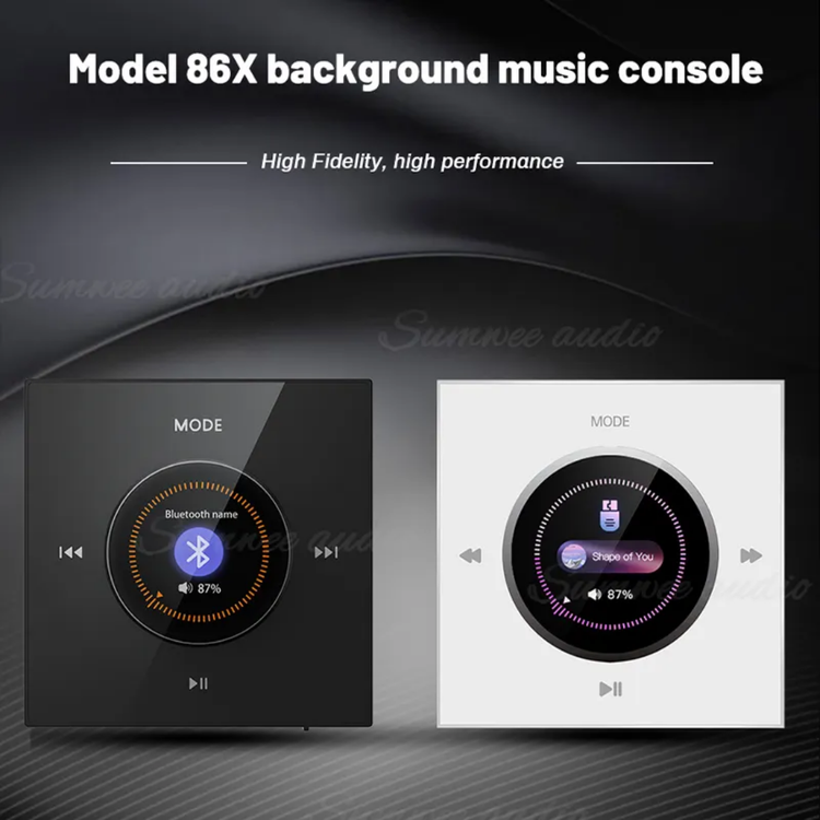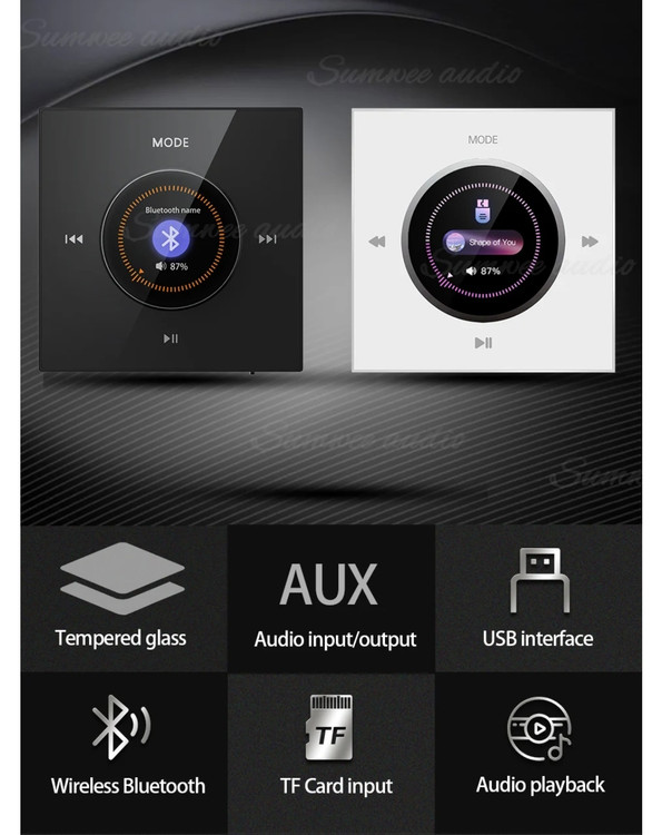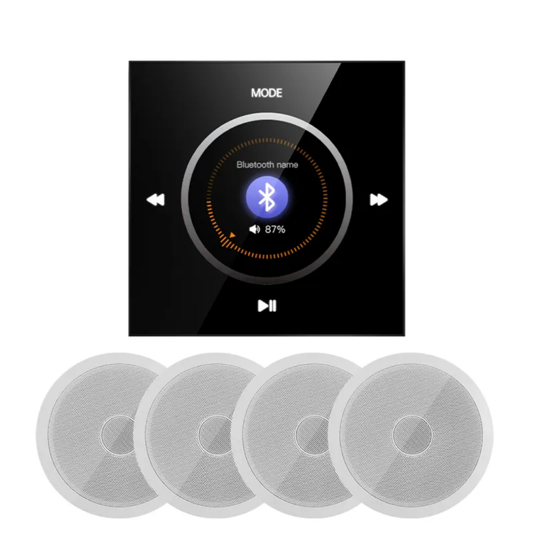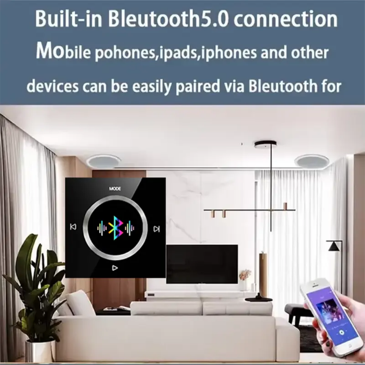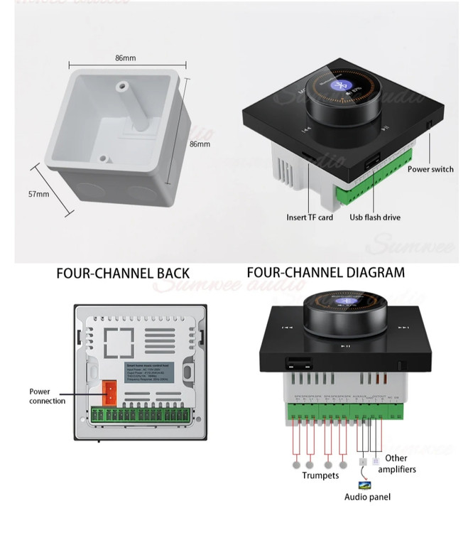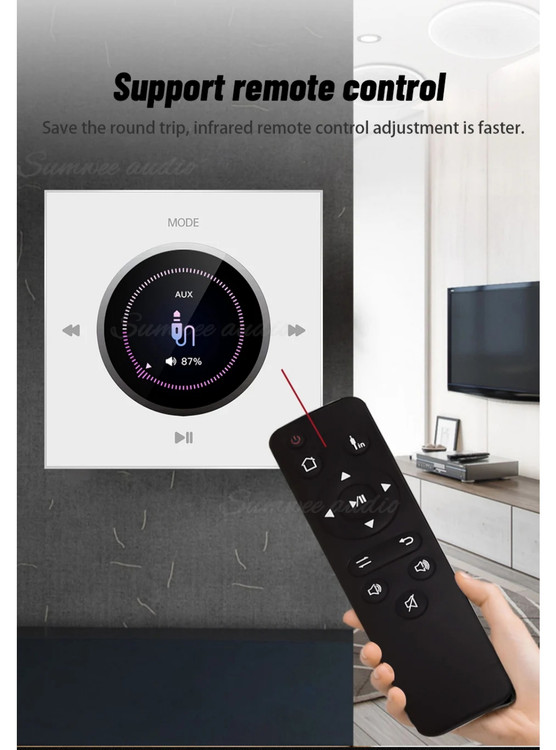 امپلی فایر دیواری بلوتوثی ۴ کاناله ولوم دار با ریموت کنترل و aux پنل موسیقی رنگ مشکی