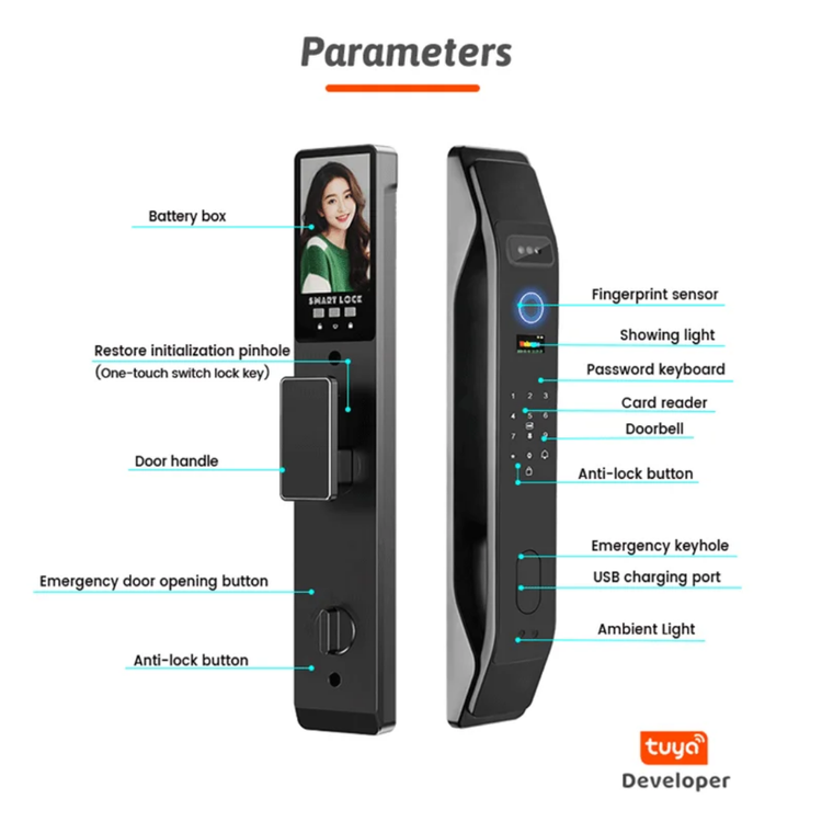 دستگیره هوشمند دارای تشخیص چهره و تشخیص کف دست مدل تویا دارای وایفای برند اسمارت لاک tuya wifi قفل هوشمند قفل دیجیتال