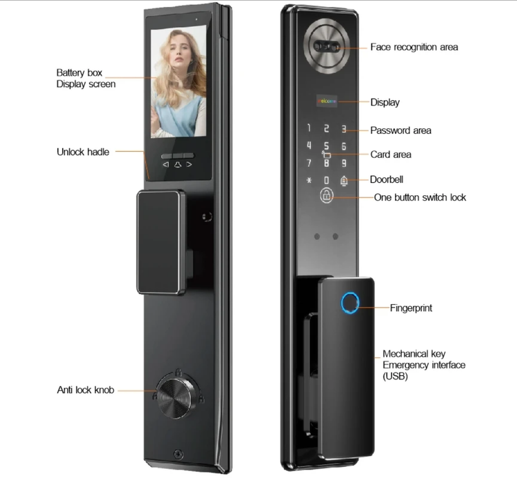 Smart lock by face recognition and palm tuya wifi