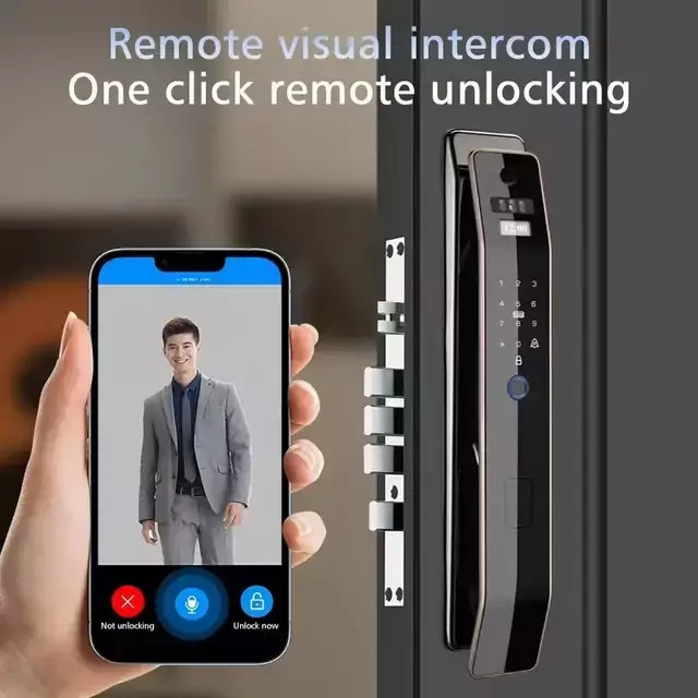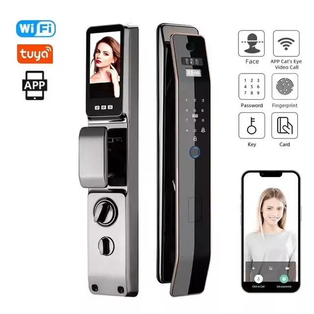 دستگیره هوشمند تشخیص چهره تویا مدل F7 بدنه زینک ضدخش tuya برند Smartlock با مکالمه تصویری از راه دور