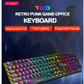 کیبورد گیمینگ مدل T80 برند T-wolf تی ولف رنگین کمانی Retro punk صفحه کلید t80 twolf